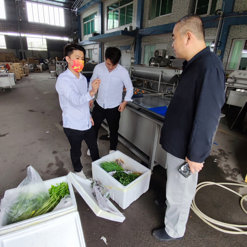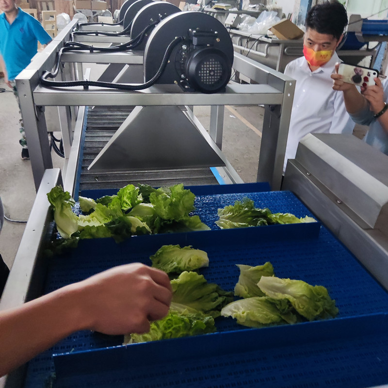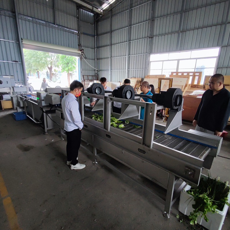 二、淨菜清(qīng)洗加工生產線,現場清洗、風幹、包裝(zhuāng)測試
