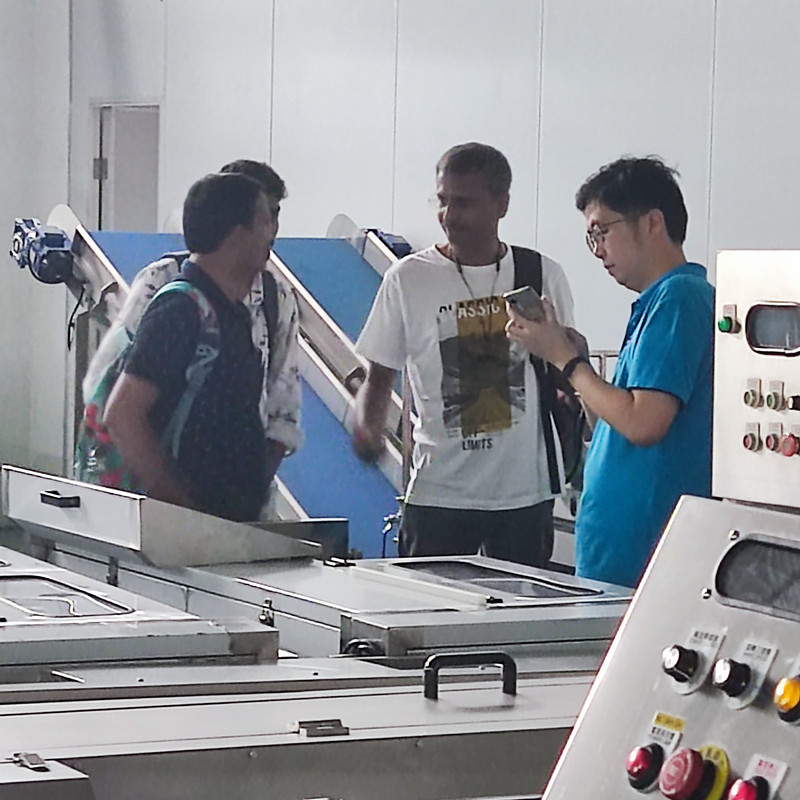 2023年6月17日;印度客戶慕名而來;在公司綜合(hé)展廳進行參觀交流並(bìng)現場(chǎng)試機;