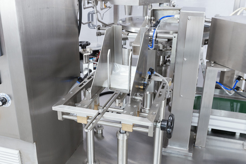 全自動給袋式包裝機是專門應用於(yú)對外觀要求較高的預製袋型進 行包裝的自動化設備,通過多工位來完成對包裝袋的開口,打印,充(chōng)填,封口(kǒu)等一係列動(dòng)作,適用於各種顆粒、液體、漿狀、片狀、粉狀物料,被廣泛應用於食品、醫藥、飲料、化(huà)工、農業(yè)、五金、玩(wán)具等行業。