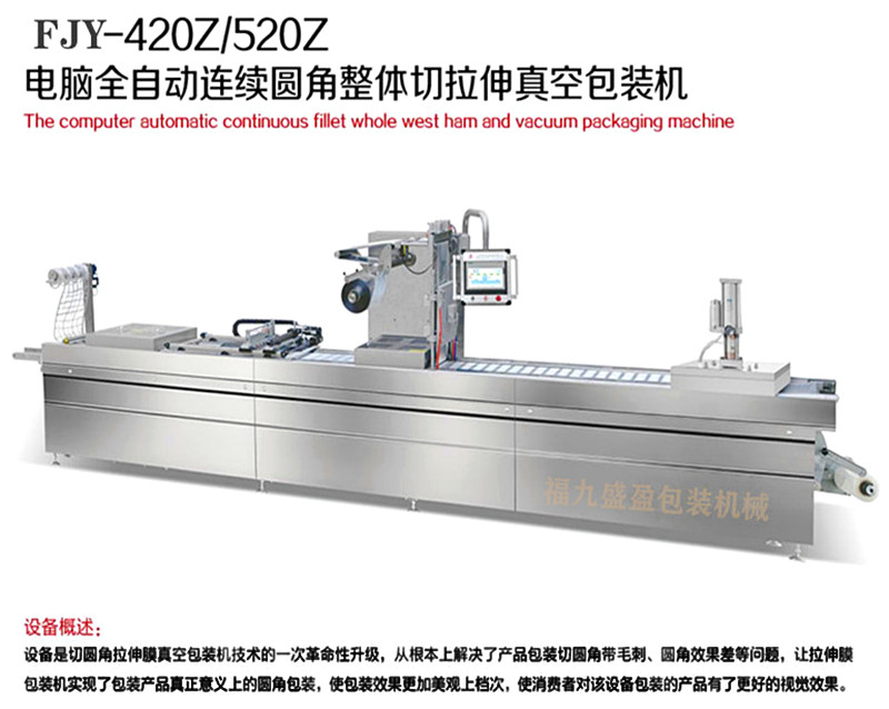 全(quán)自(zì)動連續圓角(jiǎo)整體切拉伸真空包裝機特點;