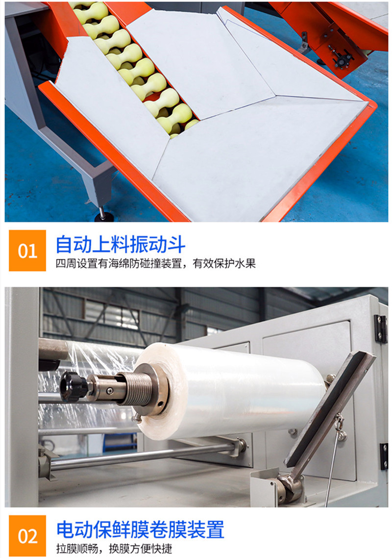 全自動水果保鮮膜包裝機;適用於單果包裝,包裝(zhuāng)速度(dù)快,並且能有效保護水果不受損傷,省人工,提升效率;操作簡便,更換拉膜裝置簡單,智能溫控切刀,有效防止漏包,高感度光電眼色標(biāo)跟蹤,使封切位置(zhì)更加準確;運行轉動係統簡潔,工(gōng)作更可靠,維護保養更方便。