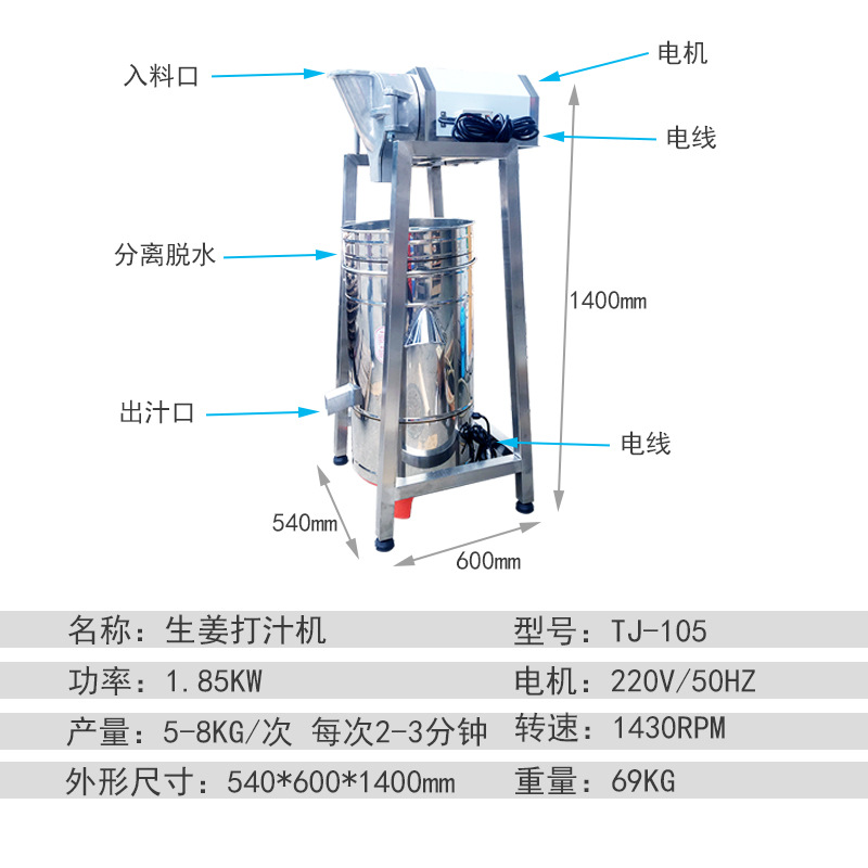 用途:將生薑處理成薑汁,並把薑汁和薑渣分離,用於豆漿、果蔬類的打汁或分離。